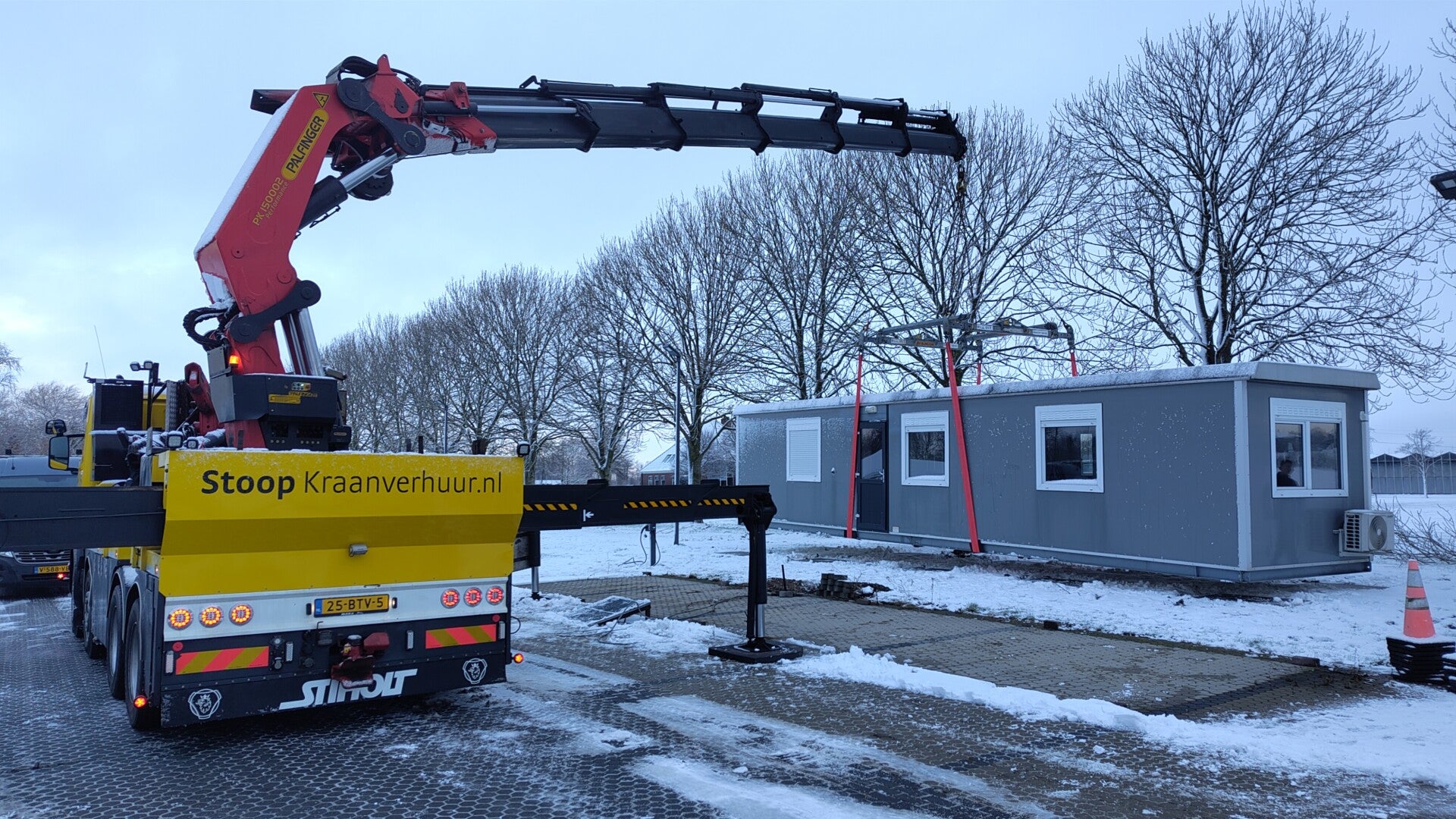 Boven de achterassen staat een van de zwaarste palfinger autolaadkranen gemonteerd, namelijk de PK 150002 Performance met een zeer indrukwekkende hijstabel.